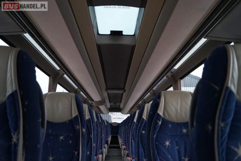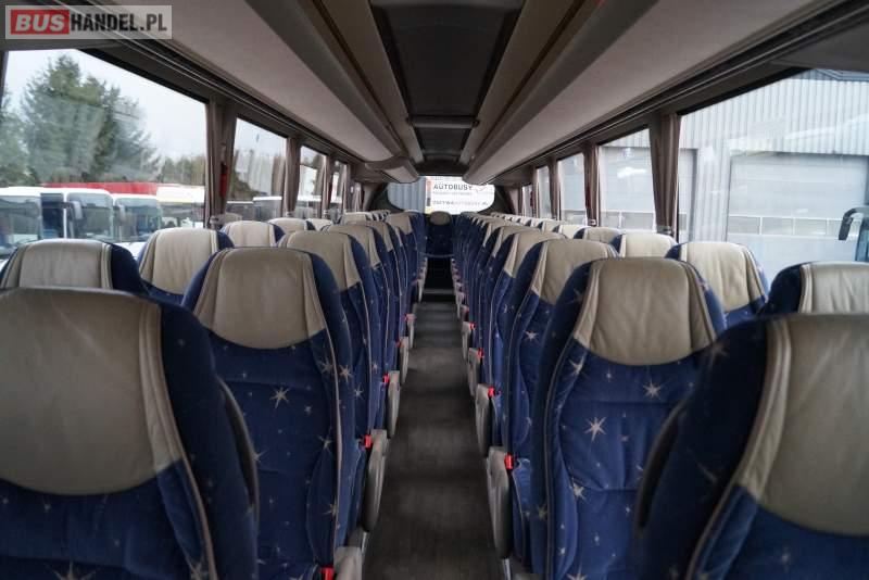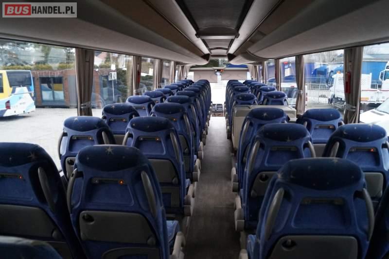 Wyposażenie: WC, lodówka, fotele odchylane, oświetlenie indywidualne, nawiewy dyszowe, ABS, ASR, tempomat, retarder, nawigacja, CD, podnóżki, stoliczki, mikrofon, klimatyzacja, radio, regulacja wysokości nadwozia, centralny zamek, podwójne szyby boczne, wspomaganie kierownicy, elektryczne lusterka, DVD, ogrzewanie stacjonarne