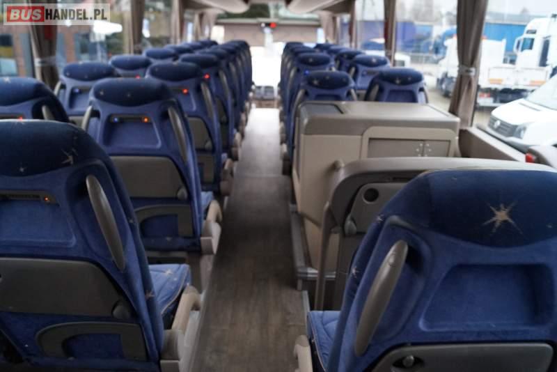 Wyposażenie: WC, lodówka, fotele odchylane, oświetlenie indywidualne, nawiewy dyszowe, ABS, ASR, tempomat, retarder, nawigacja, CD, podnóżki, stoliczki, mikrofon, klimatyzacja, radio, regulacja wysokości nadwozia, centralny zamek, podwójne szyby boczne, wspomaganie kierownicy, elektryczne lusterka, DVD, ogrzewanie stacjonarne